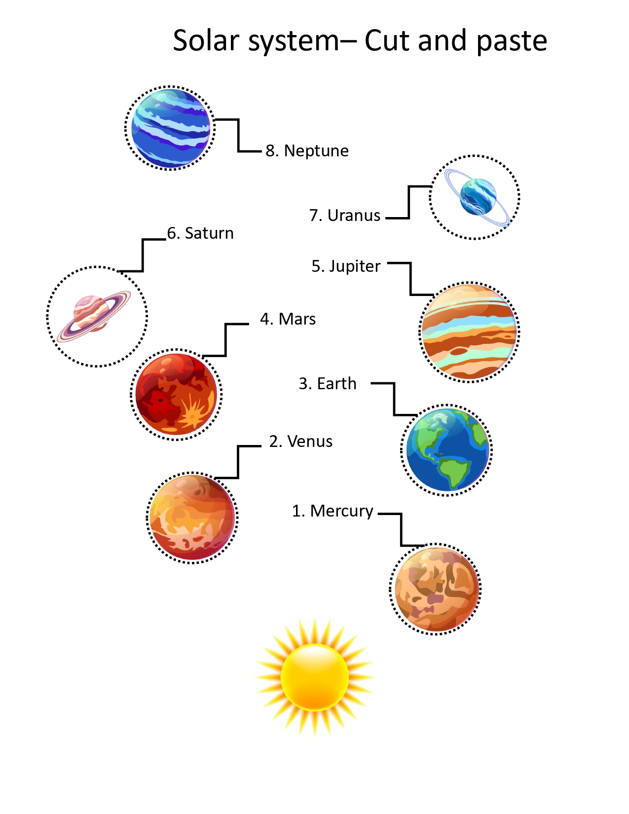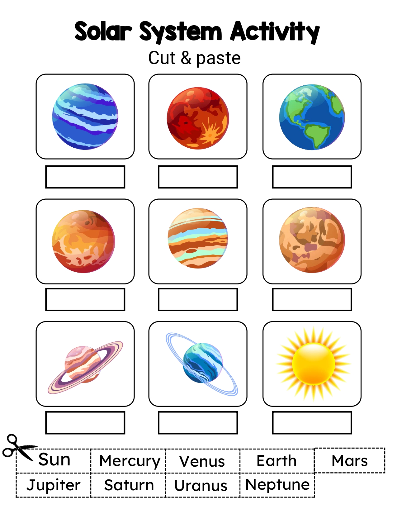๐ Orbital Order Collage: Create a captivating collage of the solar system by cutting and pasting.